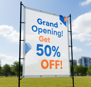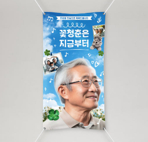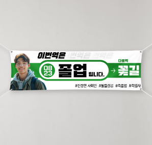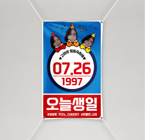 현수막의 네모서리에 흰색 고리를 붙이는 미싱입니다.